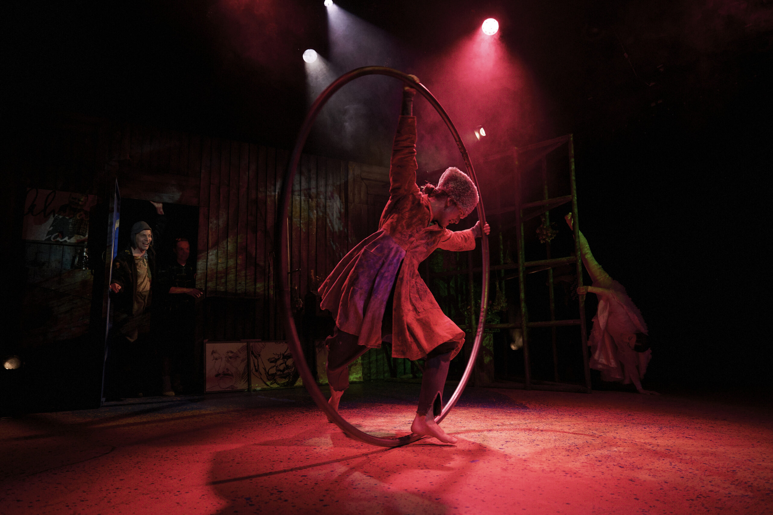 ”Sirkuksen ja teatterin yhdistelmä tuo teokseen uuden ulottuvuuden, koska tekstissä on niin paljon näkymätöntä maailmaa. Sirkus jatkaa tekstiin kirjoitettua sisältöä ja ikään kuin venyttää sitä lisää, Jarko kertoo.”